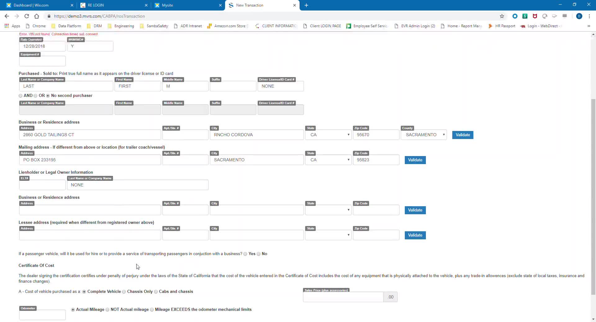 New Car Report of Sale